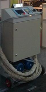 The automated installation is intended for dosing, mixing and applying of two-component foam-polyurethane coatings with a fine-dispersed filler by sputtering. It is used for thermal isolation and waterproofing of roofs, facades, foundations, containers, tanks, pipelines, etc.