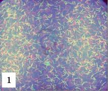 Fluorescent mark for securities with hidden degrees of protection is a polymer fiber fragments with length of 5mm and thickness of 35-40 µm (Fig. 1).